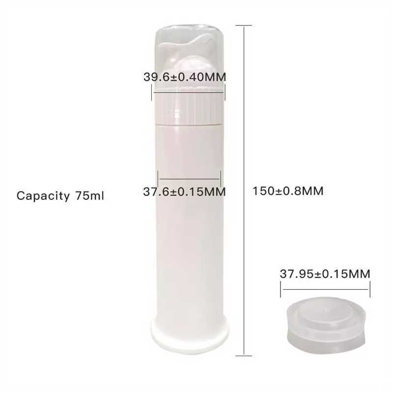 Sızdırmaz hava almayan diş macunu pompası şişelerimiz, güvenlik, dayanıklılık ve güvenilirlik sağlayan yüksek kaliteli, gıda sınıfı PP malzemeden üretilmiştir. Hava almayan pompa sistemi ile tasarlanan bu şişeler, kontaminasyonu ve ürün israfını önlerken hassas dozajlama sağlar. 75 ml kapasite, diş macunu, ağız bakım ürünleri ve diğer viskoz formülasyonlar için idealdir. Mükemmel sızdırmazlık performansı sunarak seyahat dostu ve dağınıklıktan uzaktır. Özel etiketleme seçenekleri mevcuttur, bu da onları özel etiket markaları, promosyonel kullanım ve perakende ambalajları için mükemmel kılar.